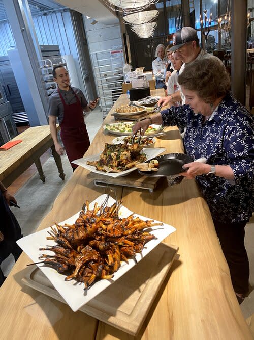 Open daily for lunch and dinner, Duo Modern: The Restaurant at Market Hill is an important addition to Round Top and an important part of the Market Hill experience to Paul Michael. He has a passion for bringing people together, and it’s in this spirit of togetherness that he began hosting a pig roast each show – in fact, he even built a special smoker for the occasion. Paul Michael loves creating an atmosphere of people gathering around, being a part of the process, seeing how food is prepared and having conversations about it. This kind of intention is evident in every detail of the restaurant, including the open kitchen where you’ll notice two new chefs at the helm. Houston-based sous chef Nathanel “Nate” Pineda and head chef Gino Llanes, a 21-year vet, say they have never had quite the experience to creatively deploy their passion like this before.