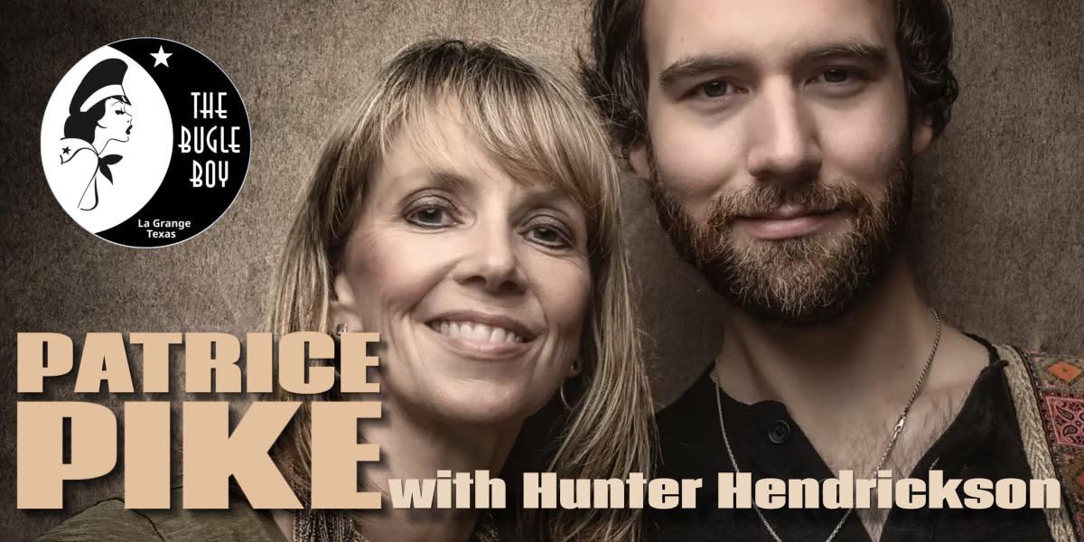 Texas Music Hall of Fame rock and soul powerhouse! Duo performance with Hunter Hendrickson Known for her socially astute, literate lyrics and powerful vocals, Patrice Pike will light you on fire. She burst on to the music scene in the ’90s as the electric front woman for the seminal Austin jam band Sister Seven. Pike’s songwriting has taken an increasingly narrative turn, while her sound has moved steadily in the direction of an eclectic mix of rock and soul topped with a tinge of World Music flavors. Doors 7pm - Show starts at 8pm, Open seating Listening Room - Wine, Beer & Root Beer Floats available. Stop by our website for lodging information https://thebugleboy.org/history/stay-over/ Tickets $30 https://thebugleboy.org/event/patrice-pike-with-hunter-hendrickson/
