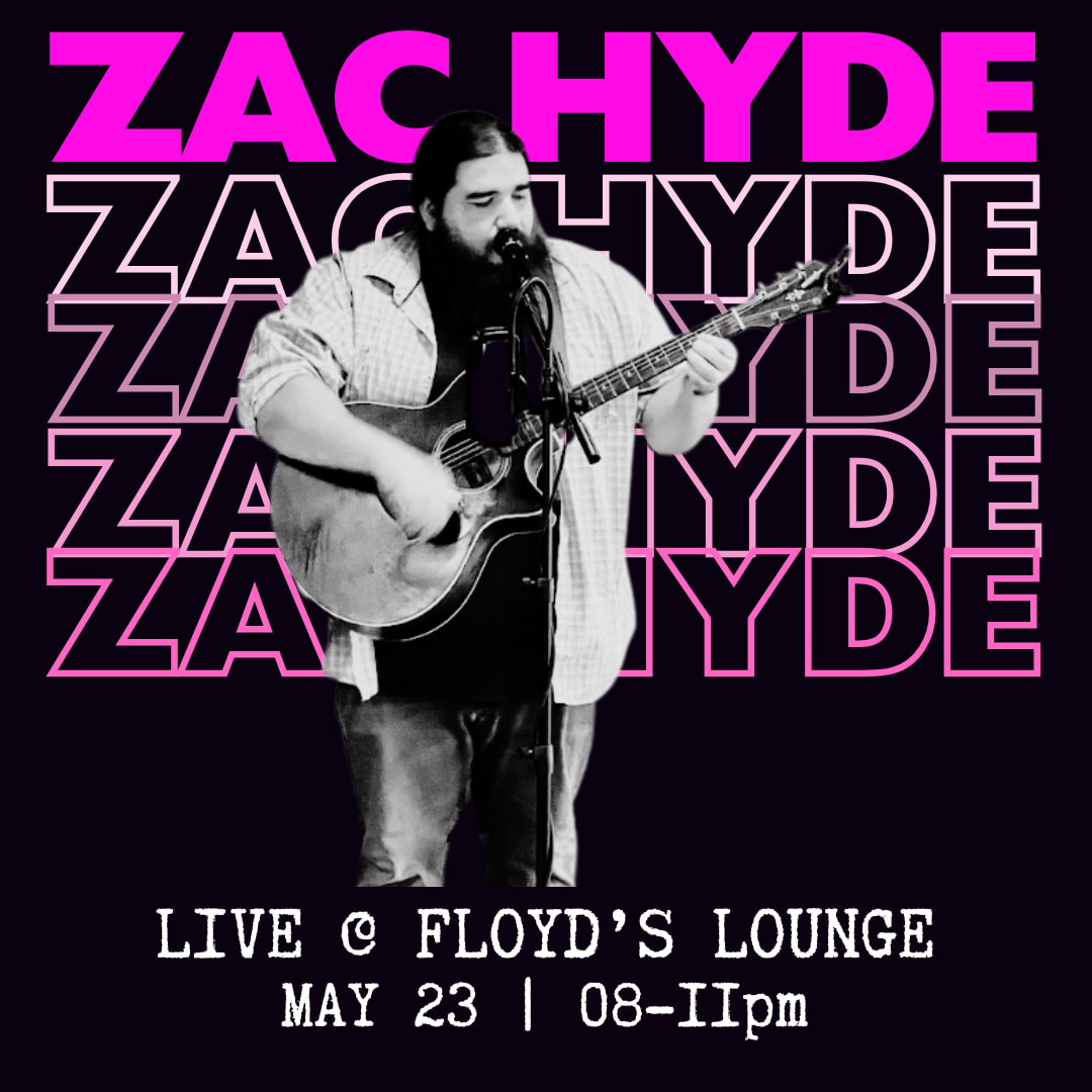 Join us Saturday, May 23rd from 8-11pm as a new fave or ours Zac Hyde takes the stage. See y'all then!