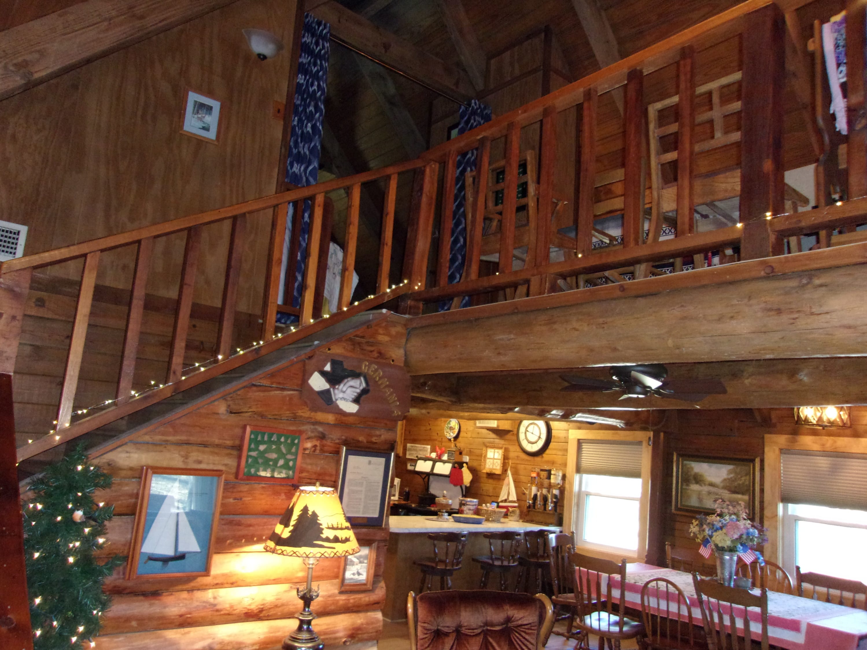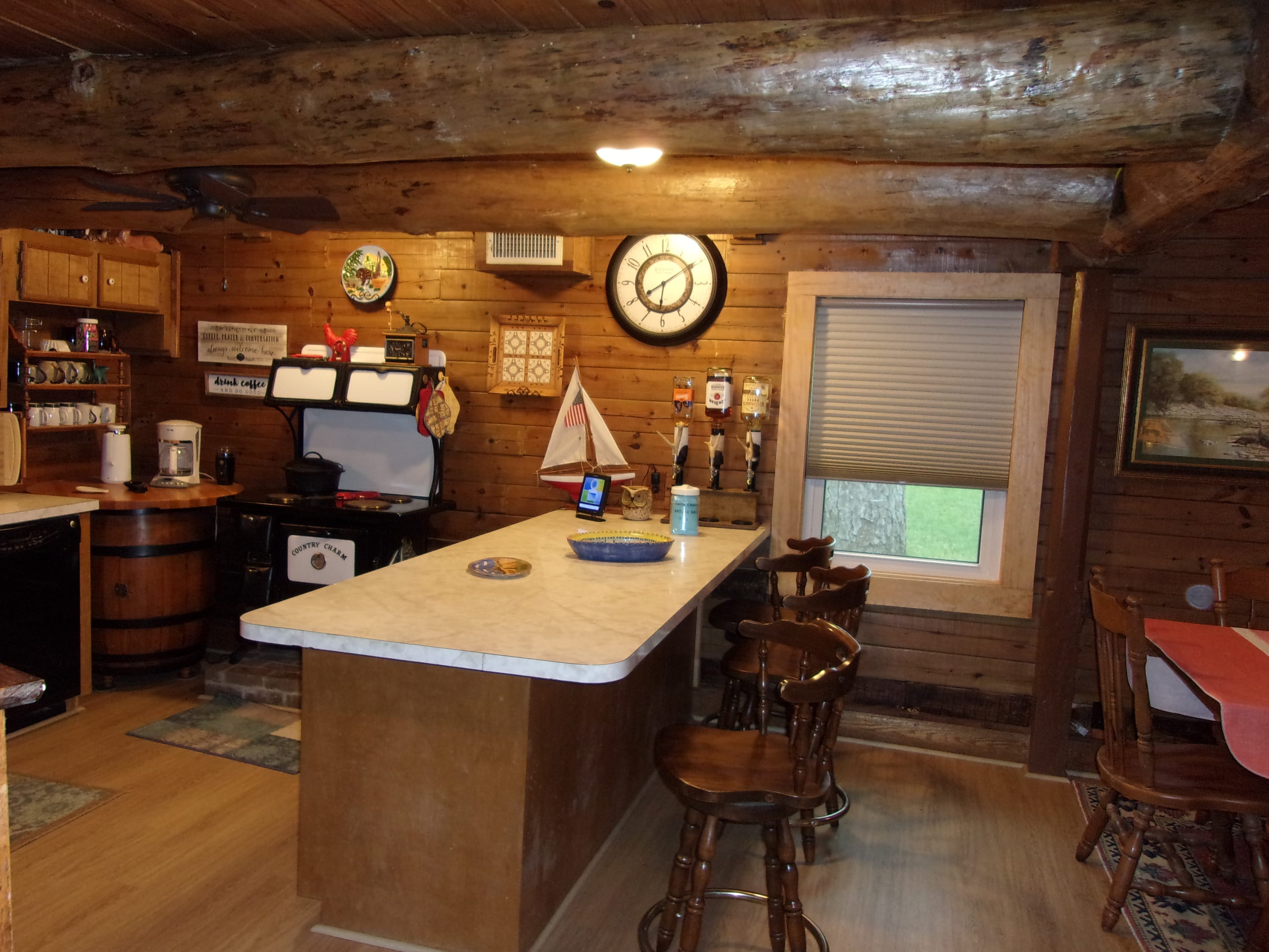 Daus Cabin is an actual 2 story log cabin with a full kitchen (refrigerator, dishwasher, antique cast iron stove, coffee maker, dinnerware), lots of seating at the kitchen bar & large dinning table, living room area, one large full bathroom walk in shower, central heat/air, beds: two king size, one full size, one twin size beds, elevated lighted Deck, Firepit, Gas Grill, Rolling Hay Pastures, Wildlife. View our photos !!